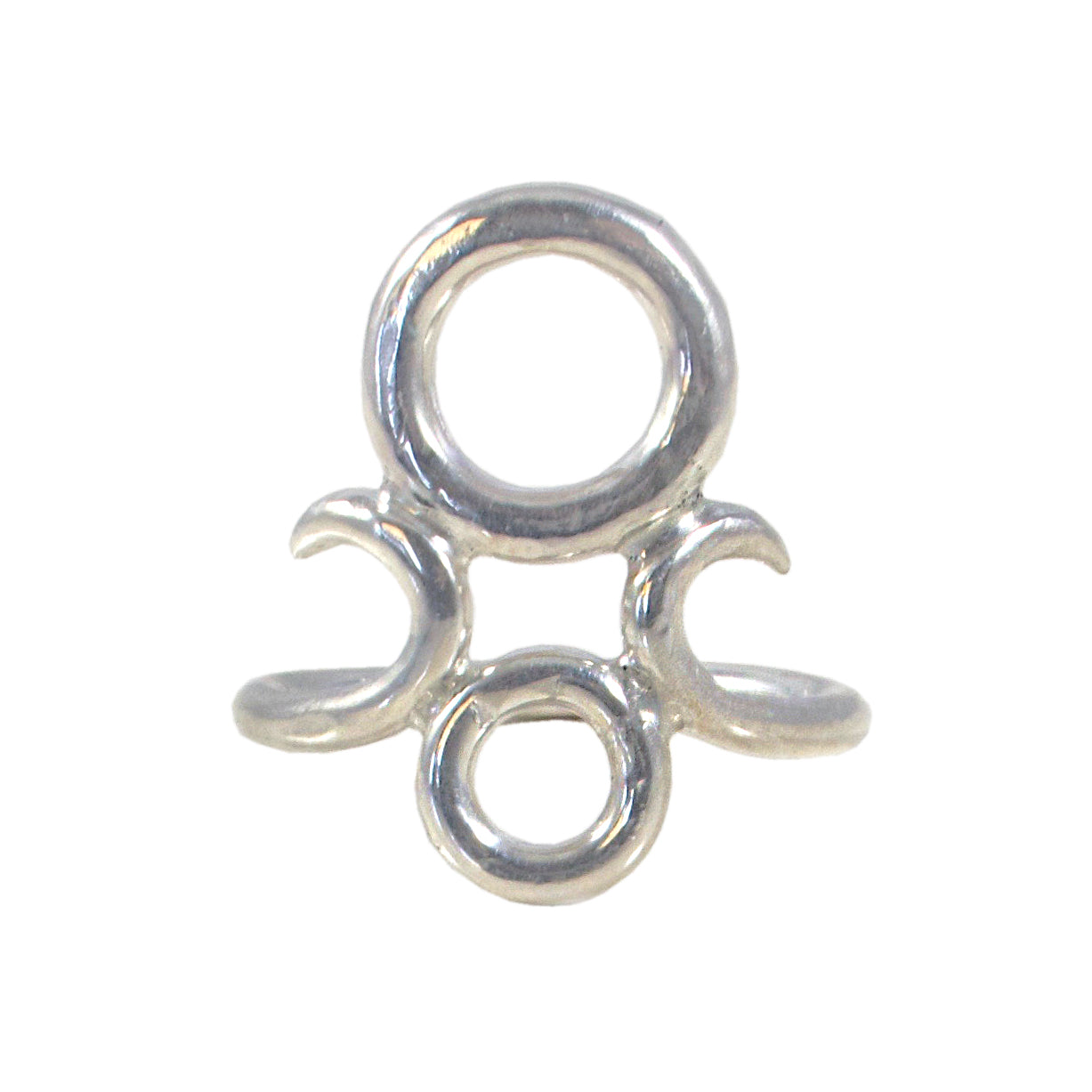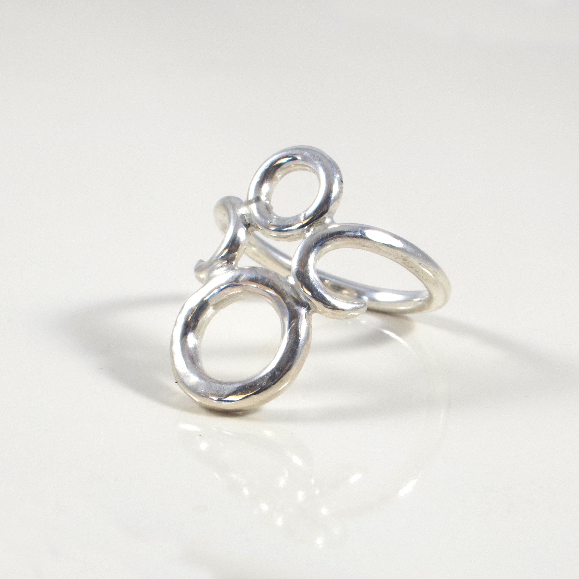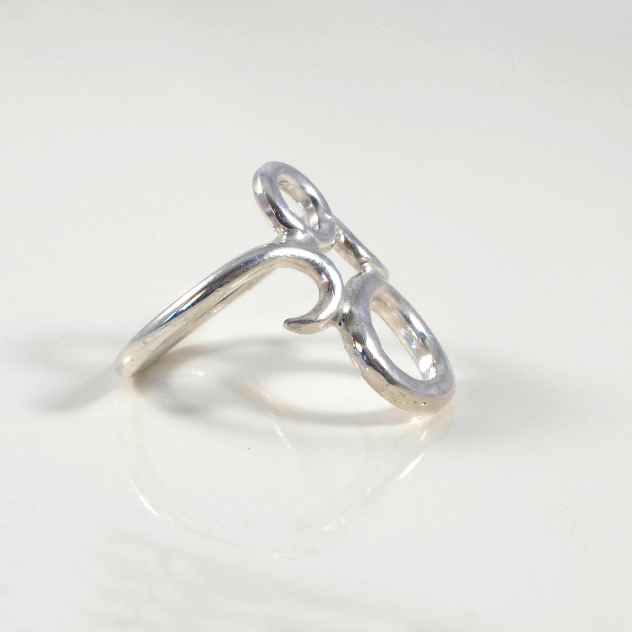 Our Morning Star Ring is a delicately balanced design of thicker wire construction crafted into airy open shapes. Made in solid Sterling Silver in a bright mirrored finish.